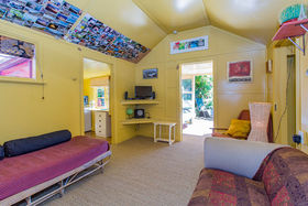 The two bedrooms in the bach will accommodate everyone with the option of any overflow guests using the sunroom with a sofa bed. The living area is warmed on cooler days by an open fire, only adding to the ambience of this address.