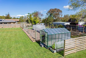 A reinforced green house and multiple covered vegetable plots along with strawberry gardens, multiple raised beds, and an excellent hen house all securely fenced add a phenomenal bonus to this excellent section. Extras include the patio to enjoy lounging in the sun after a few hours tending the gardens, woodsheds, garden shed, rainwater tank and a fully fenced section.